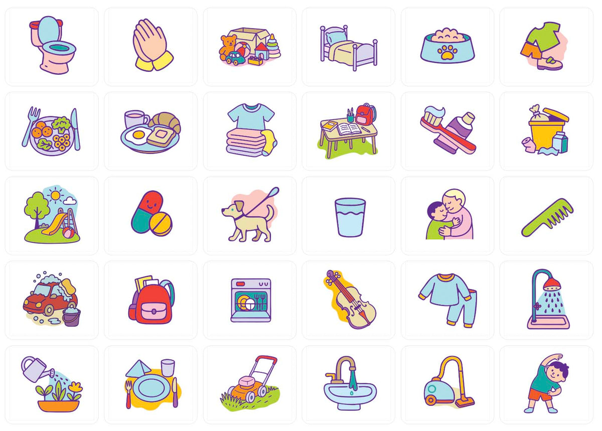 Choose from our extensive collection of pre-made task stickers. With over 30 different activities, you can create the perfect routine that matches your family's unique needs.