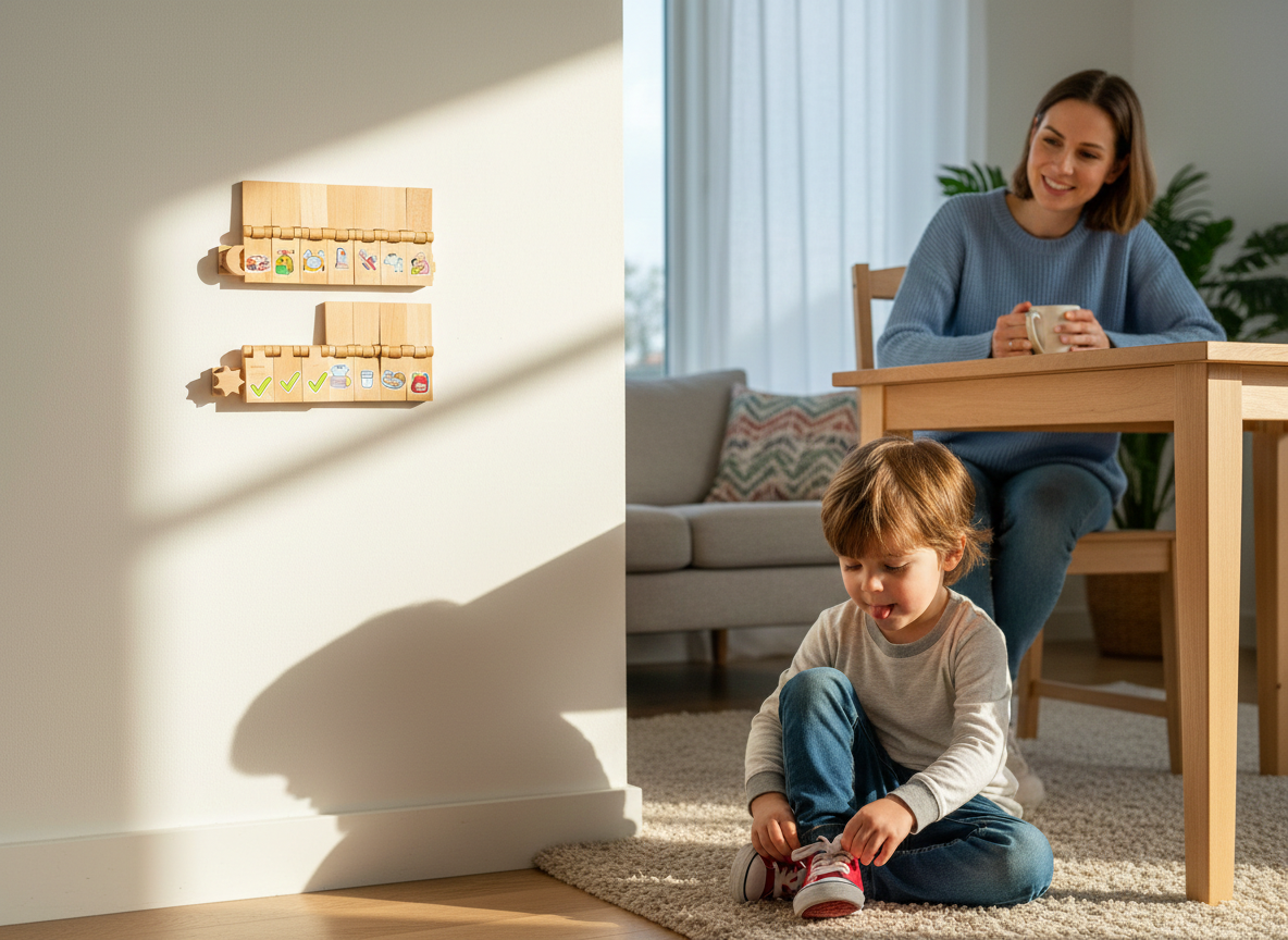 Jutranji kaos spremenite v mirnost. Flipzy je rutinski sistem brez zaslona, ki otrokom, starim od 3 do 10 let, pomaga samostojno opravljati dnevne naloge. Nič več nagajanja, nič več bitk.